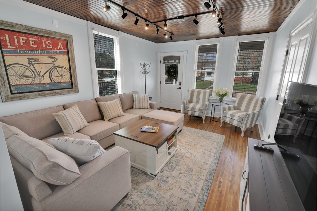 Plenty of space awaits your family or small group in this charming abode, featuring 3 bedrooms and 1 bathroom. The main floor is a haven of convenience, comprising one bedroom furnished with a luxurious King-sized bed, a living room equipped with a smart TV and a spacious sectional couch, a stunning modern bathroom, and a well-appointed kitchen complete with a large dining table, stainless steel appliances, quartz countertops, a coffee station, and all essential utensils and accessories. Additionally, a delightful sunroom offers a tranquil retreat, featuring an electric fireplace and picturesque views of lush tulip beds boasting over 3500 imported tulips from Holland, as well as a distant panorama of the Vermeer windmill and the Molengracht with its Clock Tower. For added convenience, the first floor also houses a modern full-sized washer and dryer.