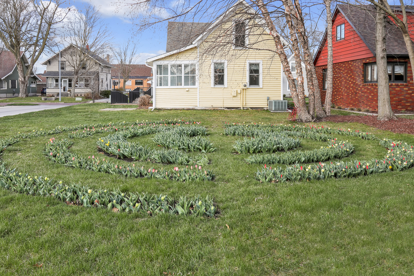 Delight in the breathtaking view of the backyard, featuring a large and impressive tulip garden adorned with over 3500 imported Dutch tulips from Holland.